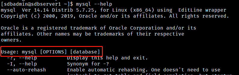 其次,通过 mysql --help 可以获知,mysql 默认不带选项指定的参数作为 database 名。